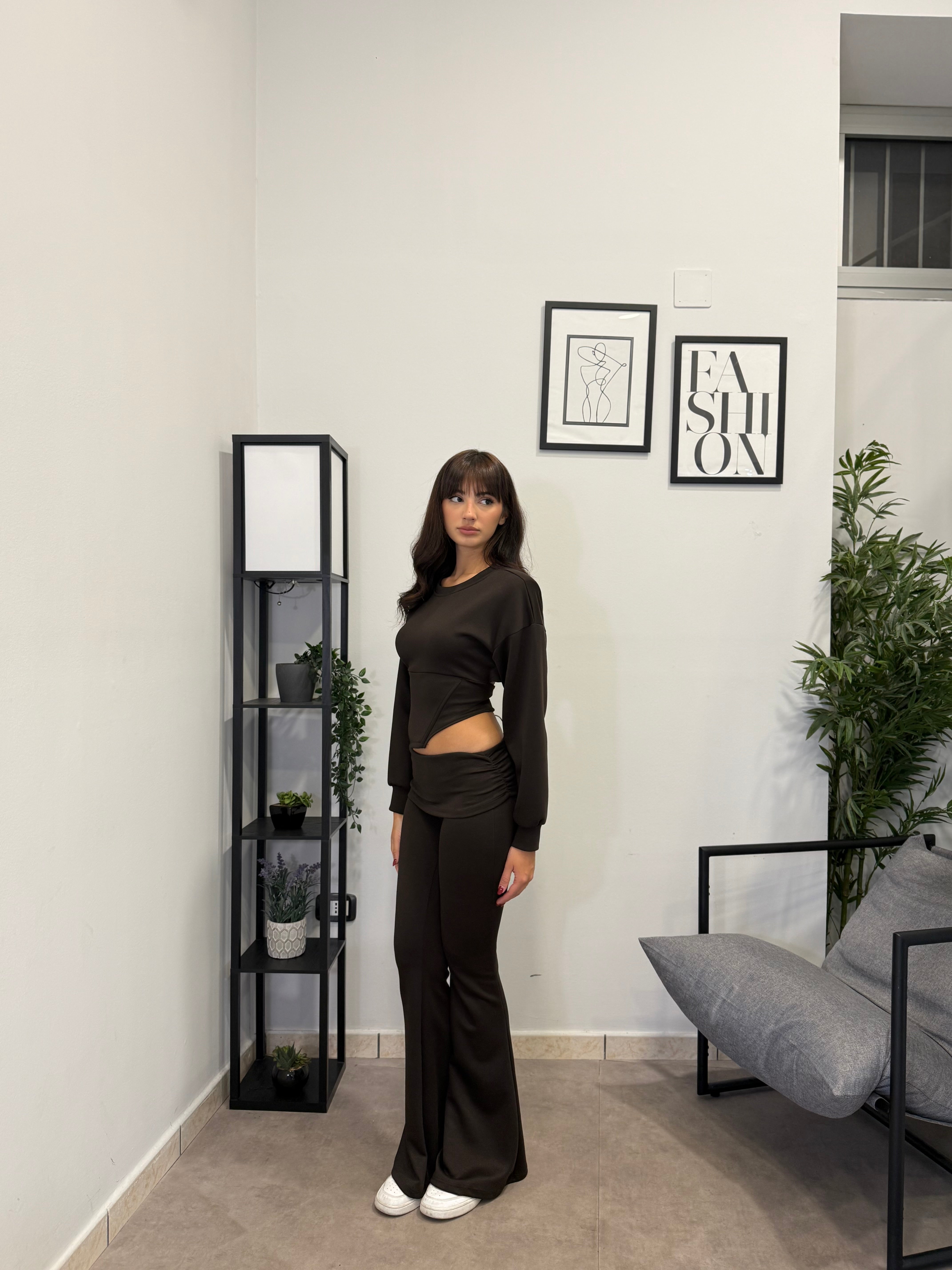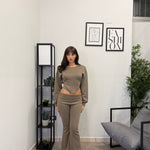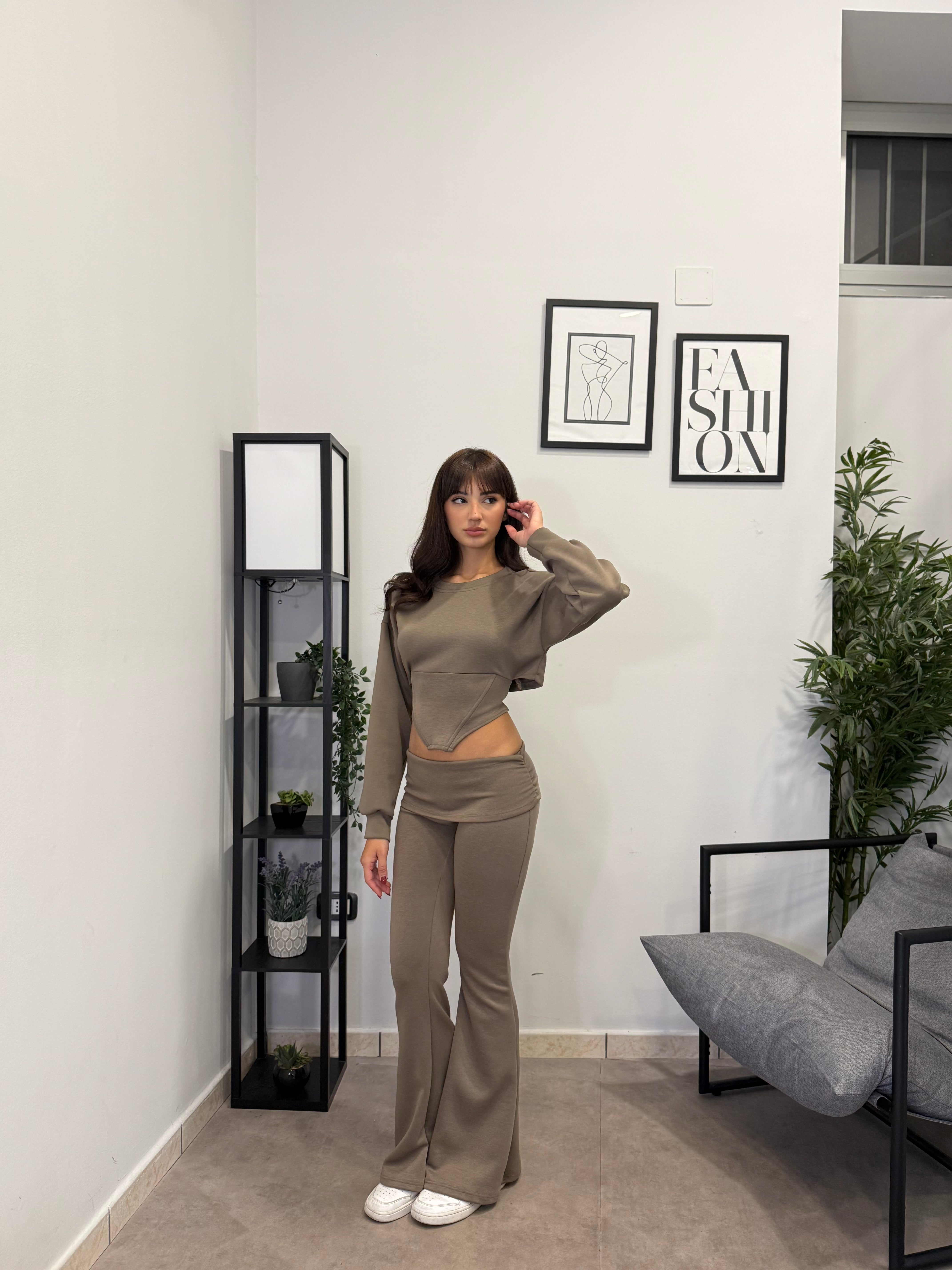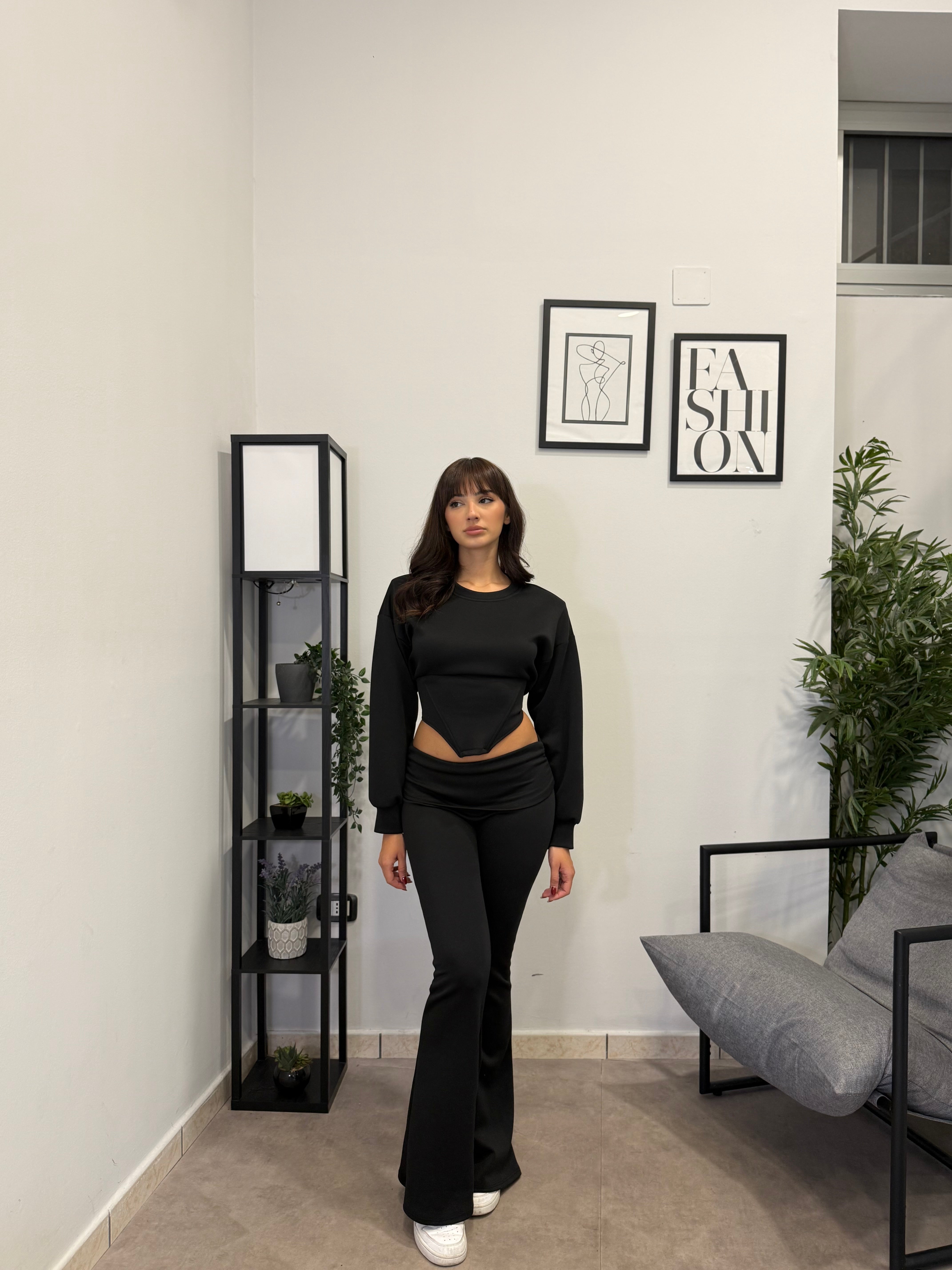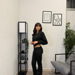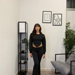 Non disponibileSet-Coordinato tuta, felpa crop con fascia in vita regolabile con le fettucce. Pantalone vita bassa aderente, leggermente a zampa. Vestibilità dalla XS alla S/M