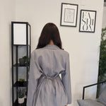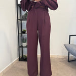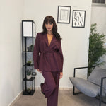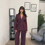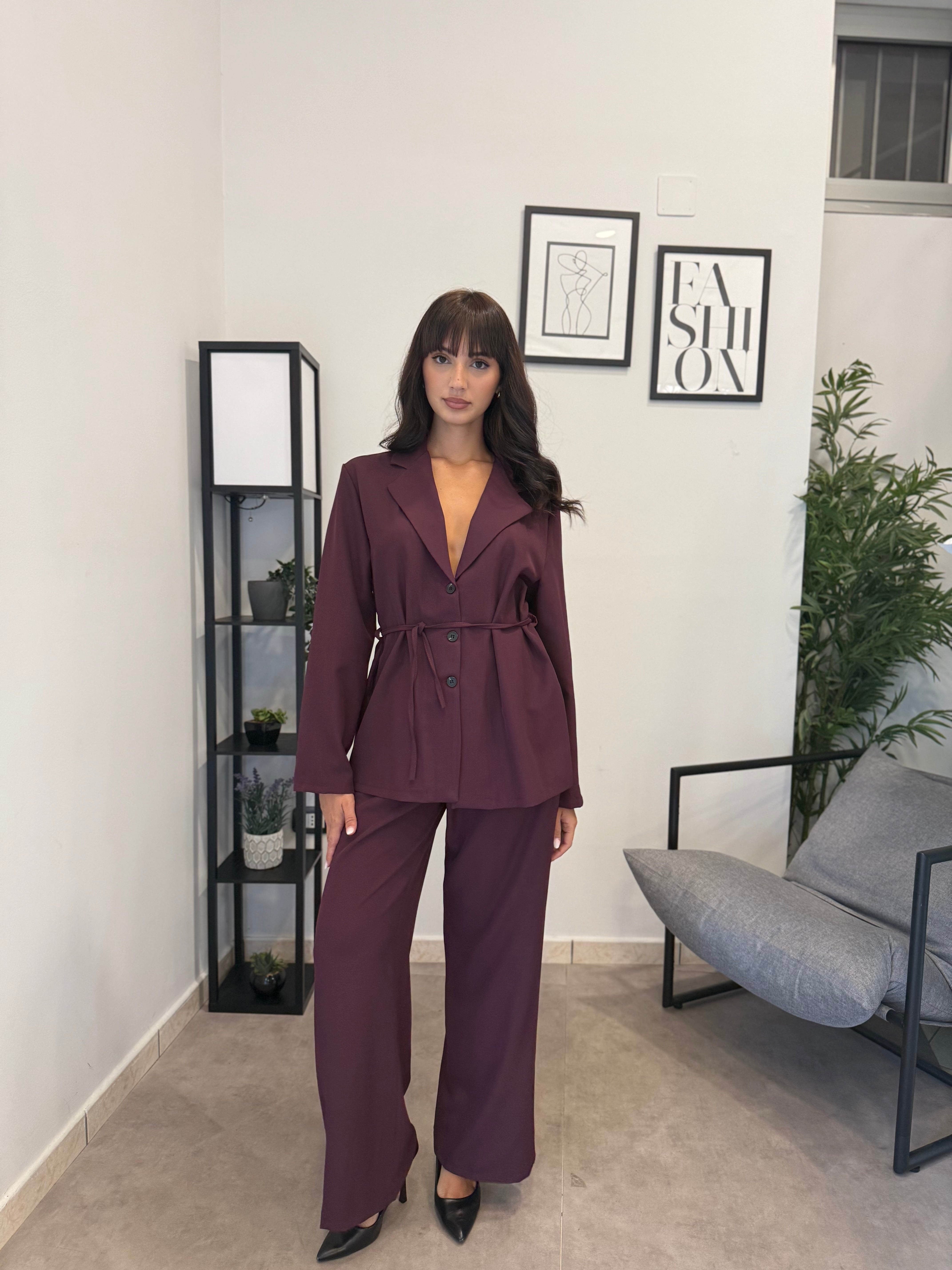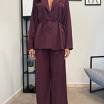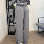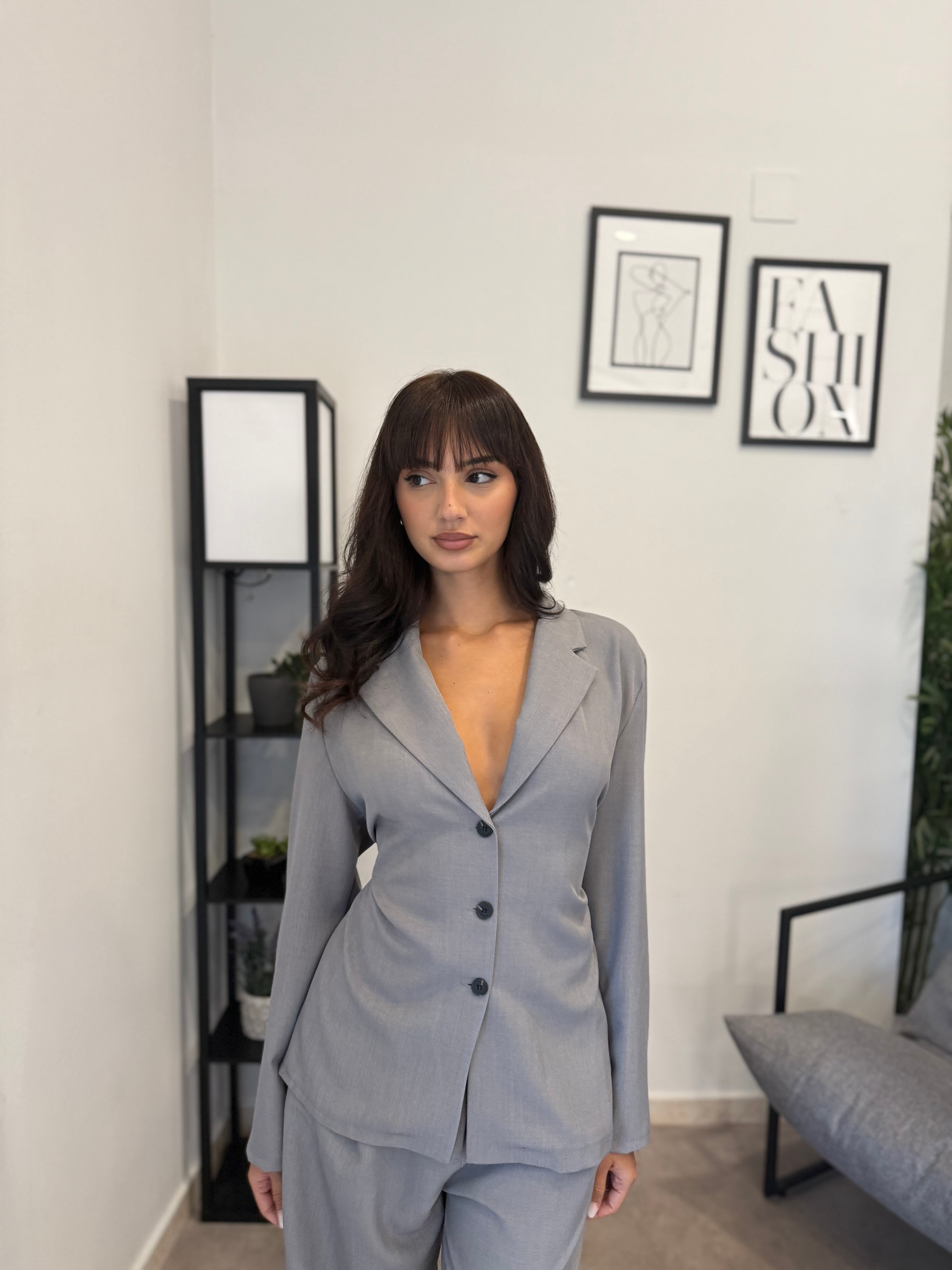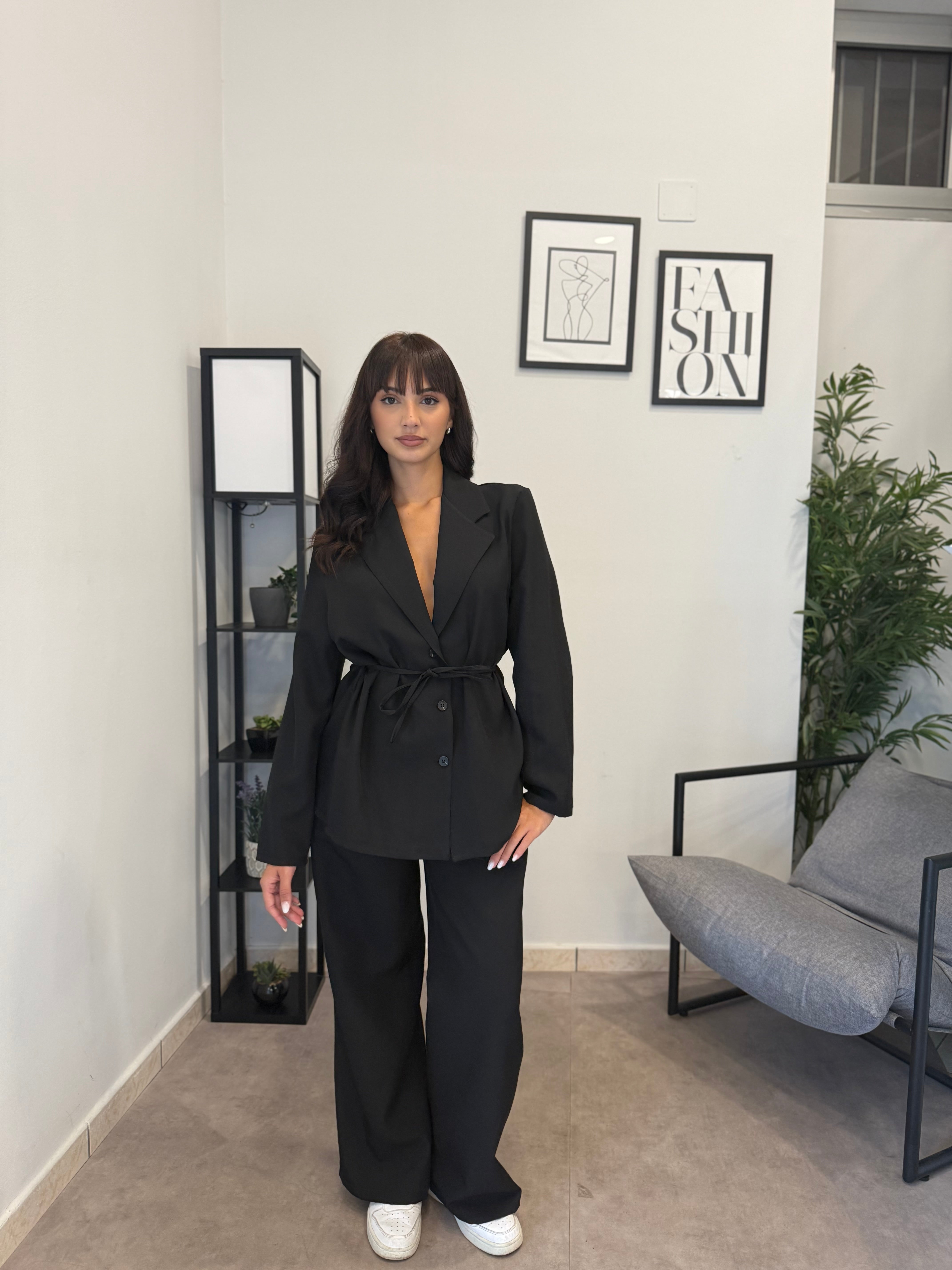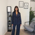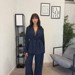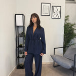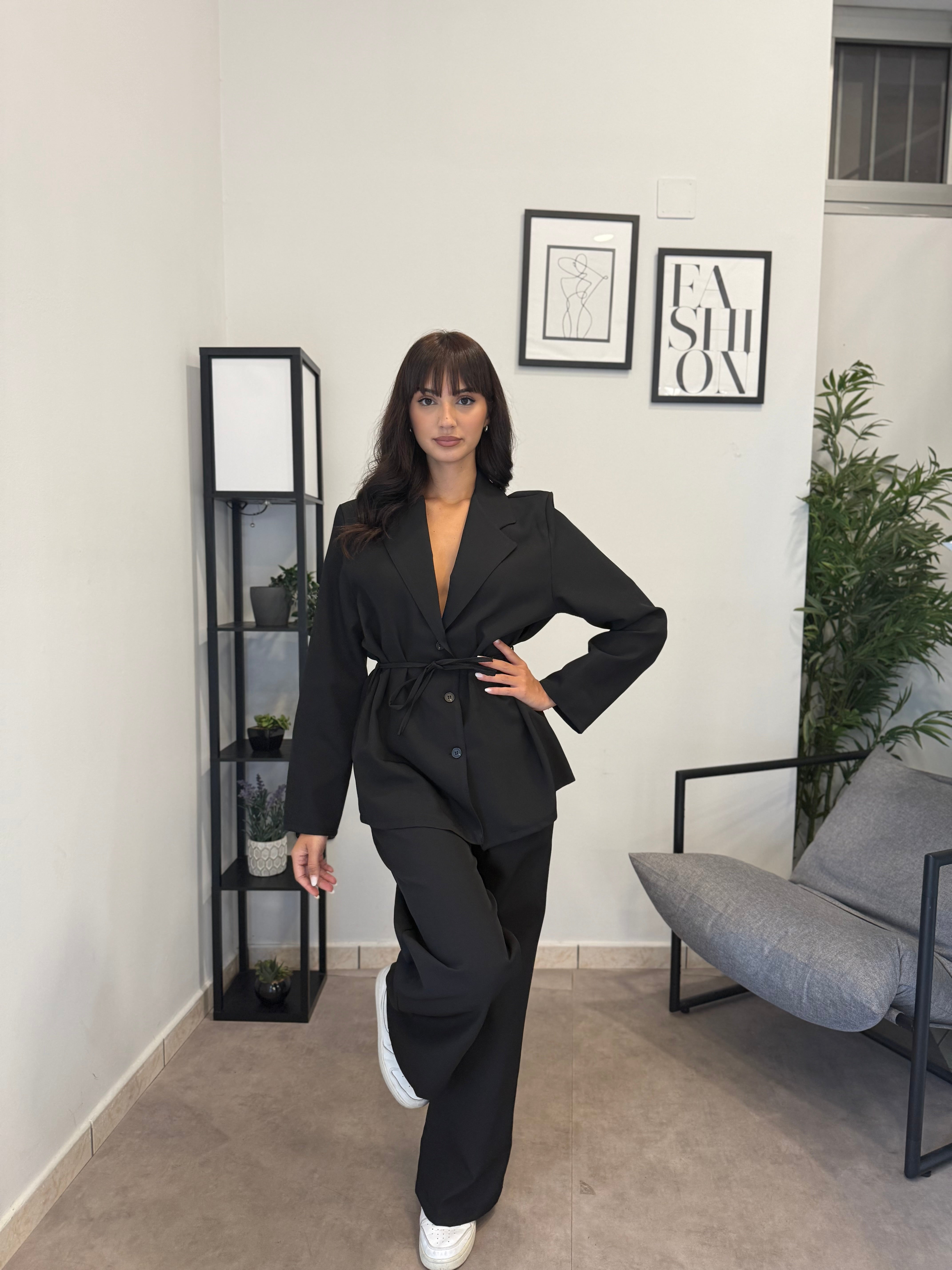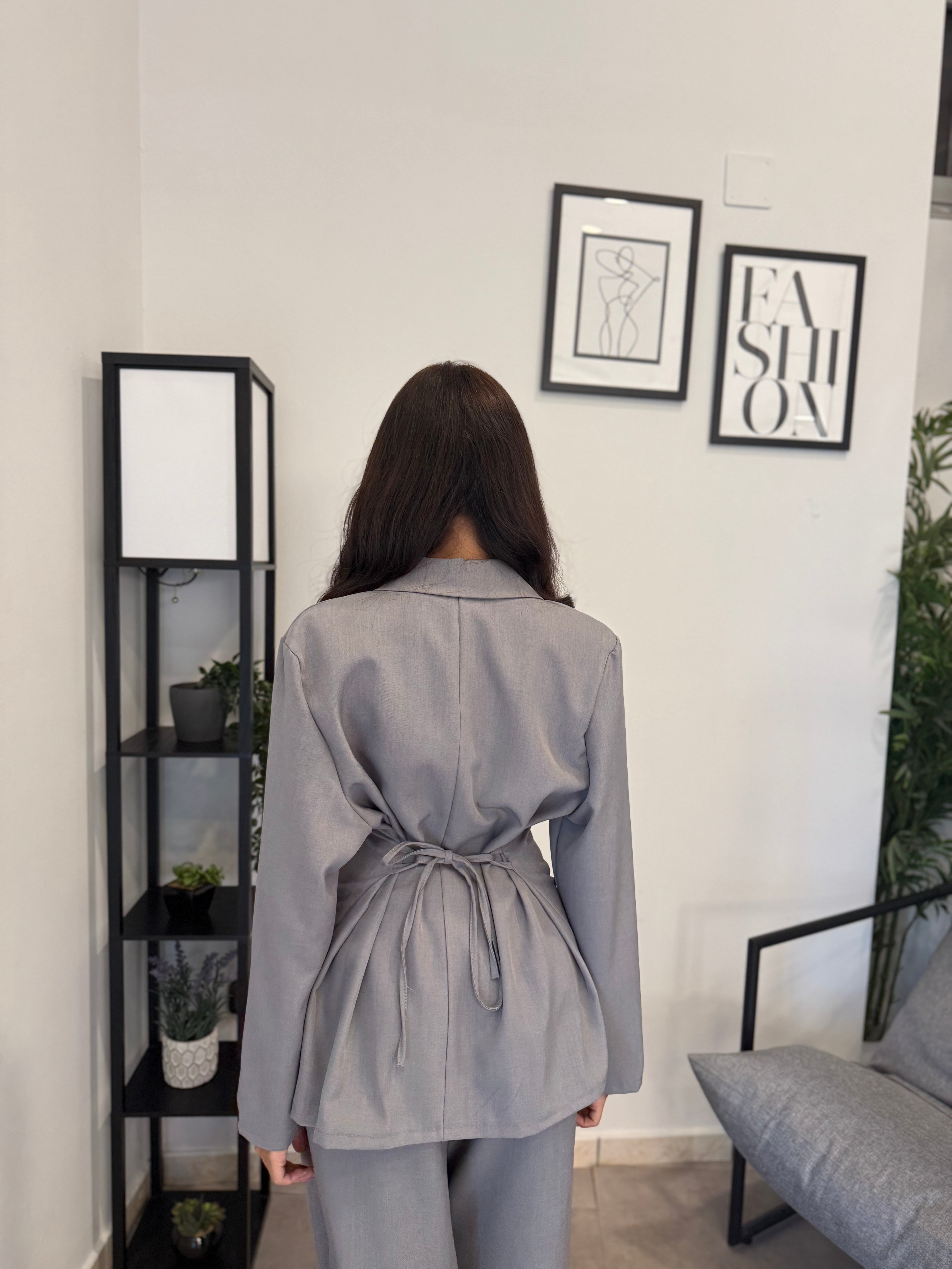 Tailleur sfoderato con giacca lunga e pantalone palazzo, ha un cinturino in vita. Puoi indossarlo in diversi modi, sia con tacco che con scarpa sportiva. Veste bene dalla S alla L