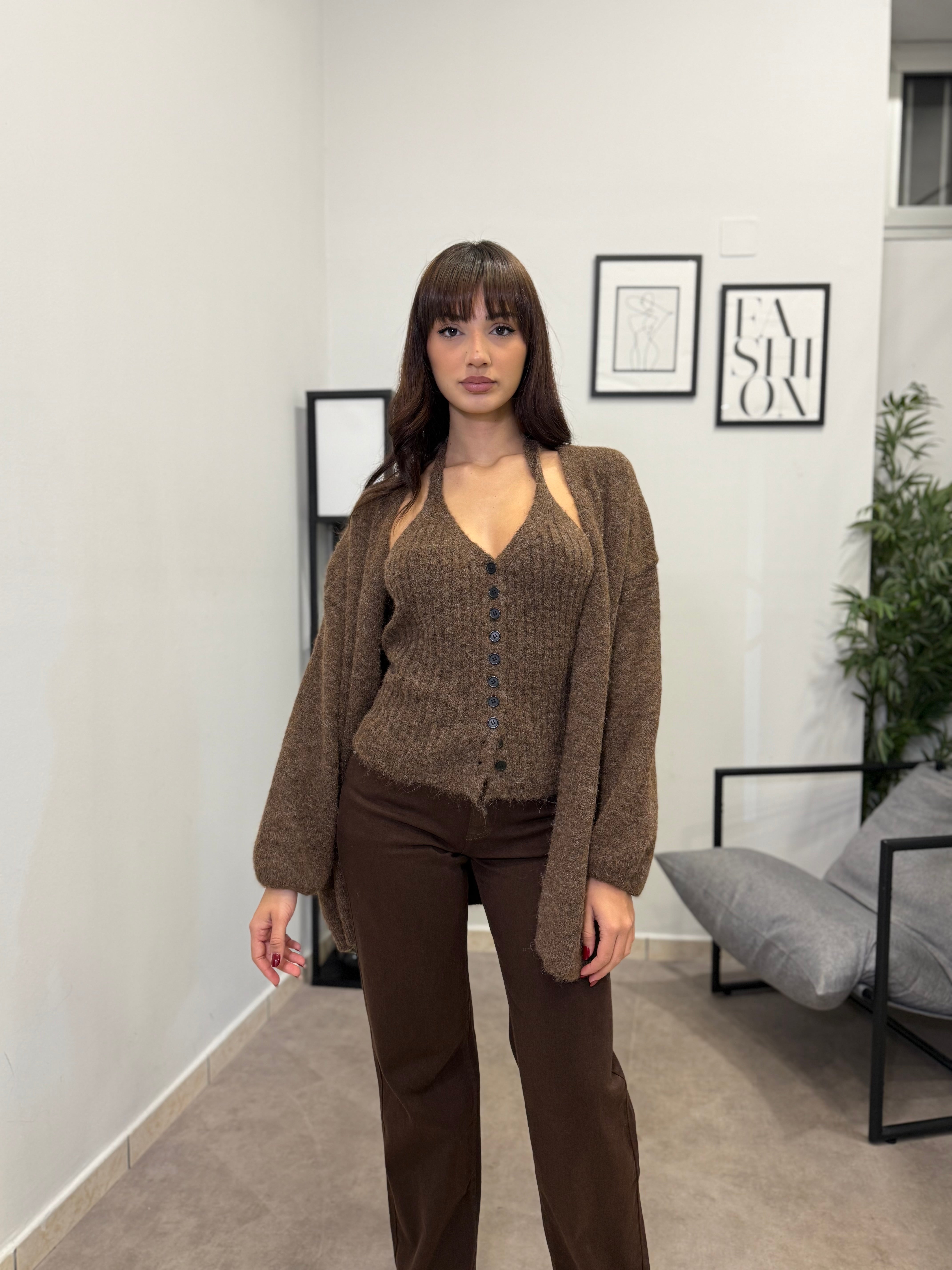 Completo con crop top e cardigan abbinato! 6% di lana! Veste bene dalla S alla L